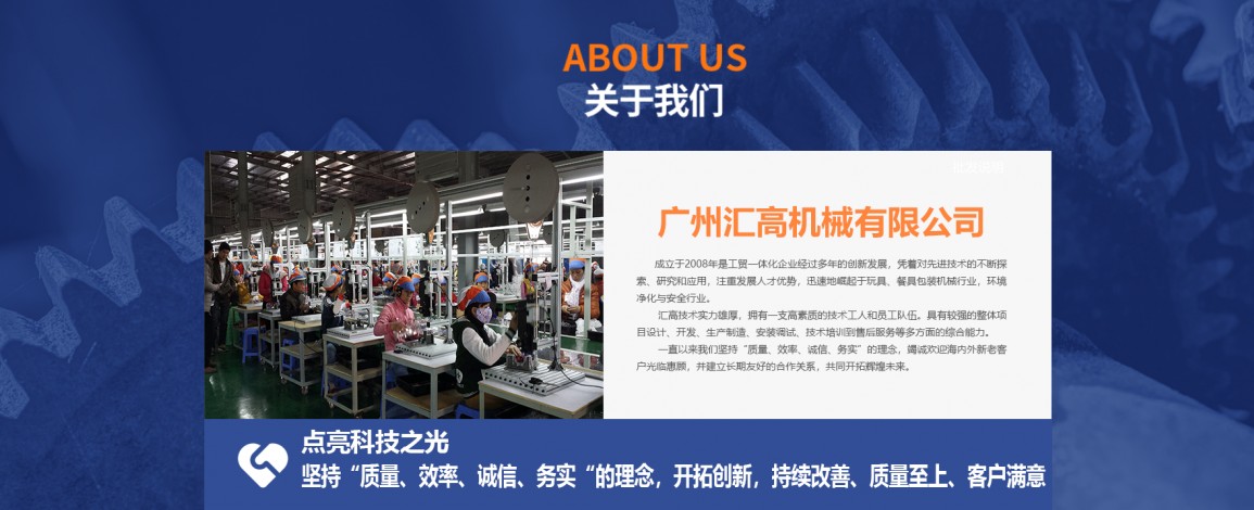 廣州匯高機械設(shè)備有限公司,成立于2008年是工貿(mào)一體化企業(yè)經(jīng)過多年的創(chuàng)新發(fā)展,憑著對先進(jìn)技術(shù)的不斷探索、研究和應(yīng)用,注重發(fā)展人才優(yōu)勢,迅速地崛起于玩具、餐具包裝機械行業(yè),環(huán)境凈化與安全行業(yè)。